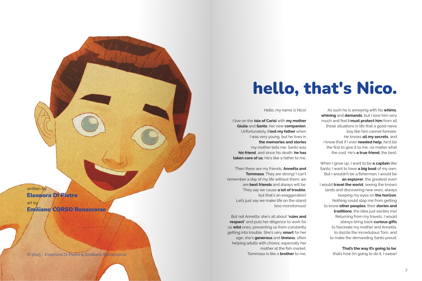 Nico is 10 years old and lives on the small island of Carisi with his mother Giulia.